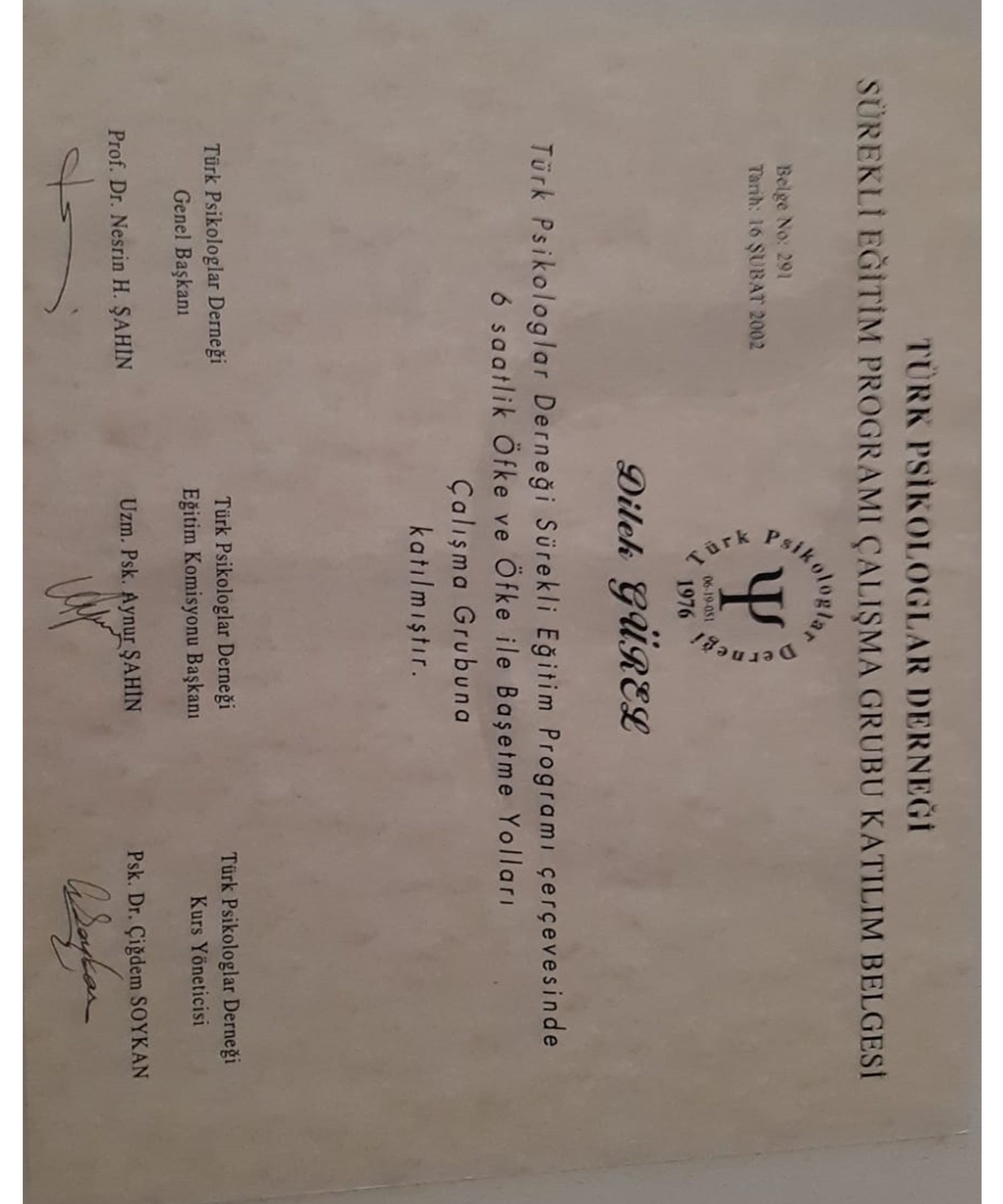 Bundan 35 yıl önce küçücük bir kasabada "Psikolog" nedir bilinmezken lisede "klinik psikolog" olmaya karar vermiş, buradan hiç dışarı hiç çıkmamışken milyonluk Başkente hayali için gelmeye cesaret etmiş biraz çılgın, biraz gözü kara biriyim. Mesleğini onuru ile bir tutan, hayatındaki herşeyden öne koyan, kendini geliştirmekten asla pes etmeyen biriyim. Sevgi, özen, sabır, özveri, saygı ve etik temel ilkelerim. Yaraları iyileştirmek,yeniden yaşama katmak,umudu tekrar yeşertmek için burdayım.